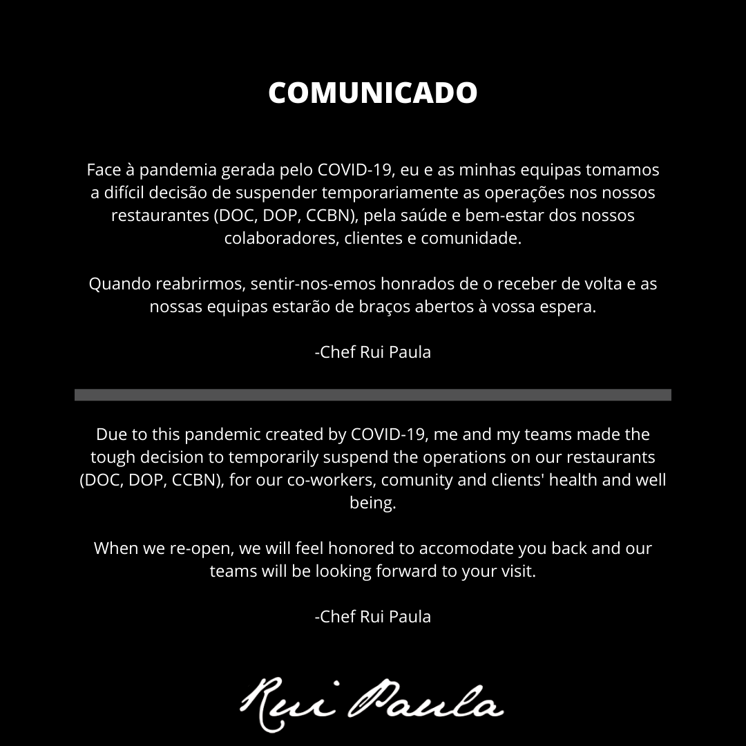 O DOC é um espaço para “Degustar Ousar Comunicar” onde Rui Paula, com um olhar moderno e inventivo, faz da cozinha um laboratório histórico baseado em várias gerações de receitas culinárias.